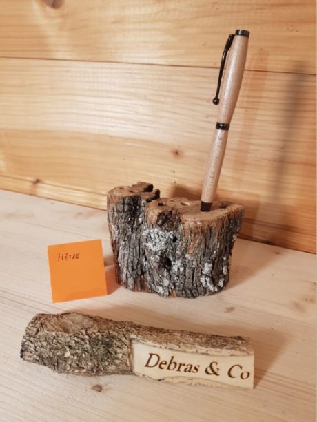 Stylo en bois de Hêtre, couleur mécanisme au choix, encre rechargeable noire. Finition vernie. Remis en étui velours noir.