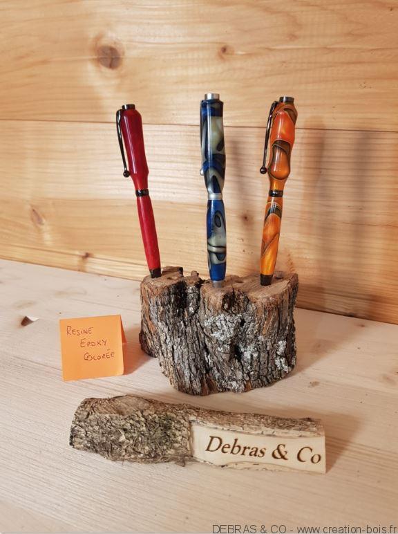 Stylo en Résine Epoxy, couleur mécanisme au choix, encre rechargeable noire. Finition lustrée. Remis en étui velours noir.